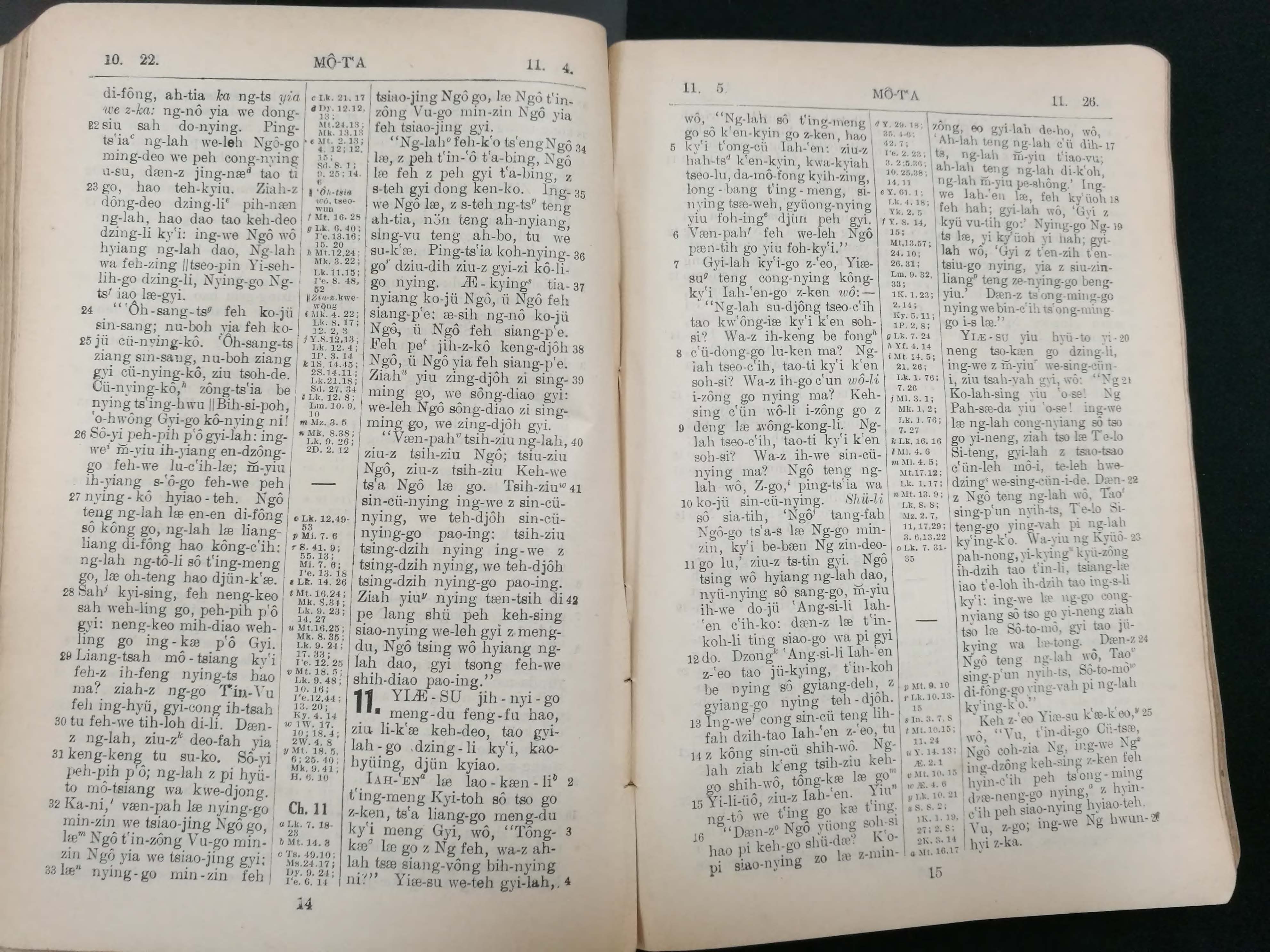 1929年宁波话罗马字新约全书 马太福音 10 章 22 节到 11 章 26 节