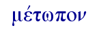 | 03359 μέτωπον, ου, τό 名词 「前额」, 路23:48 异版。为用某标志当做记号的某处, 启7:3 9:4 13:16 14:1,9 17:5 20:4 22:4 。* 说明 |