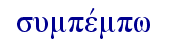 | 04842 συμπέμπω 动词 1不定式συνέπεμψα。同时打发τινά τινι某人与某人, 林后8:22 。或τινὰ μετά τινος, 林后8:18 。* 说明 |