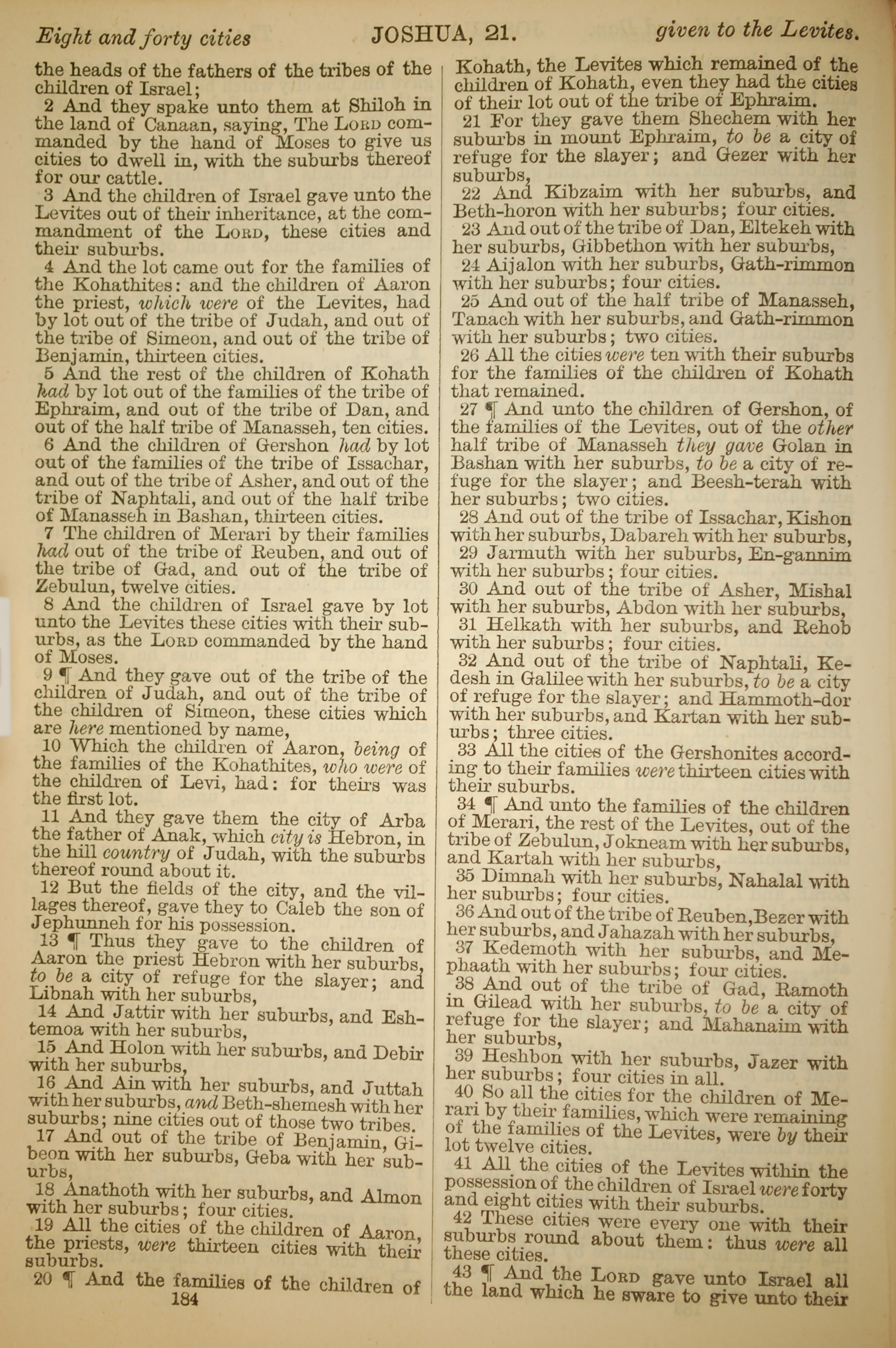 1886年英文聖經 約書亞記 21 章 2 節到 21 章 43 節