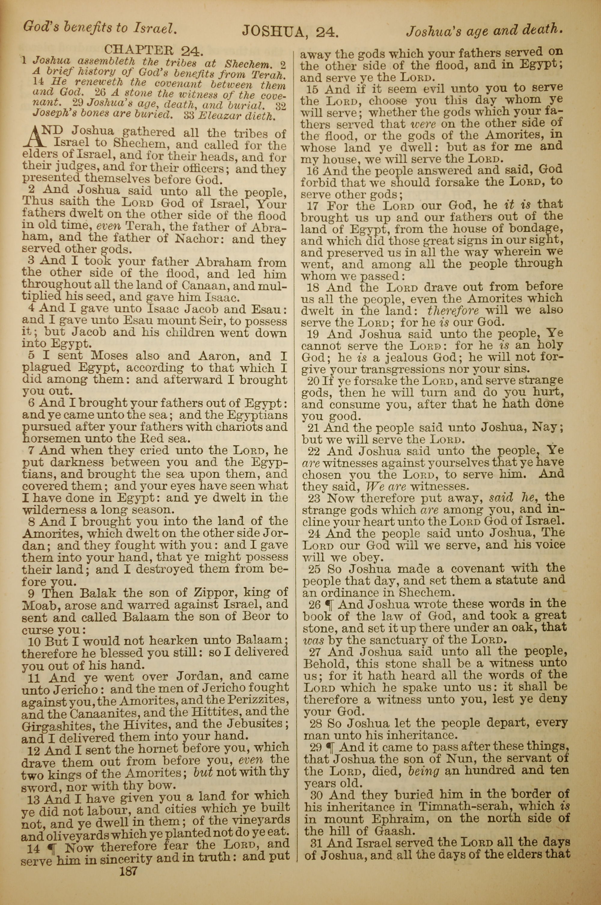 1886年英文聖經 約書亞記 24 章 1 節到 24 章 31 節