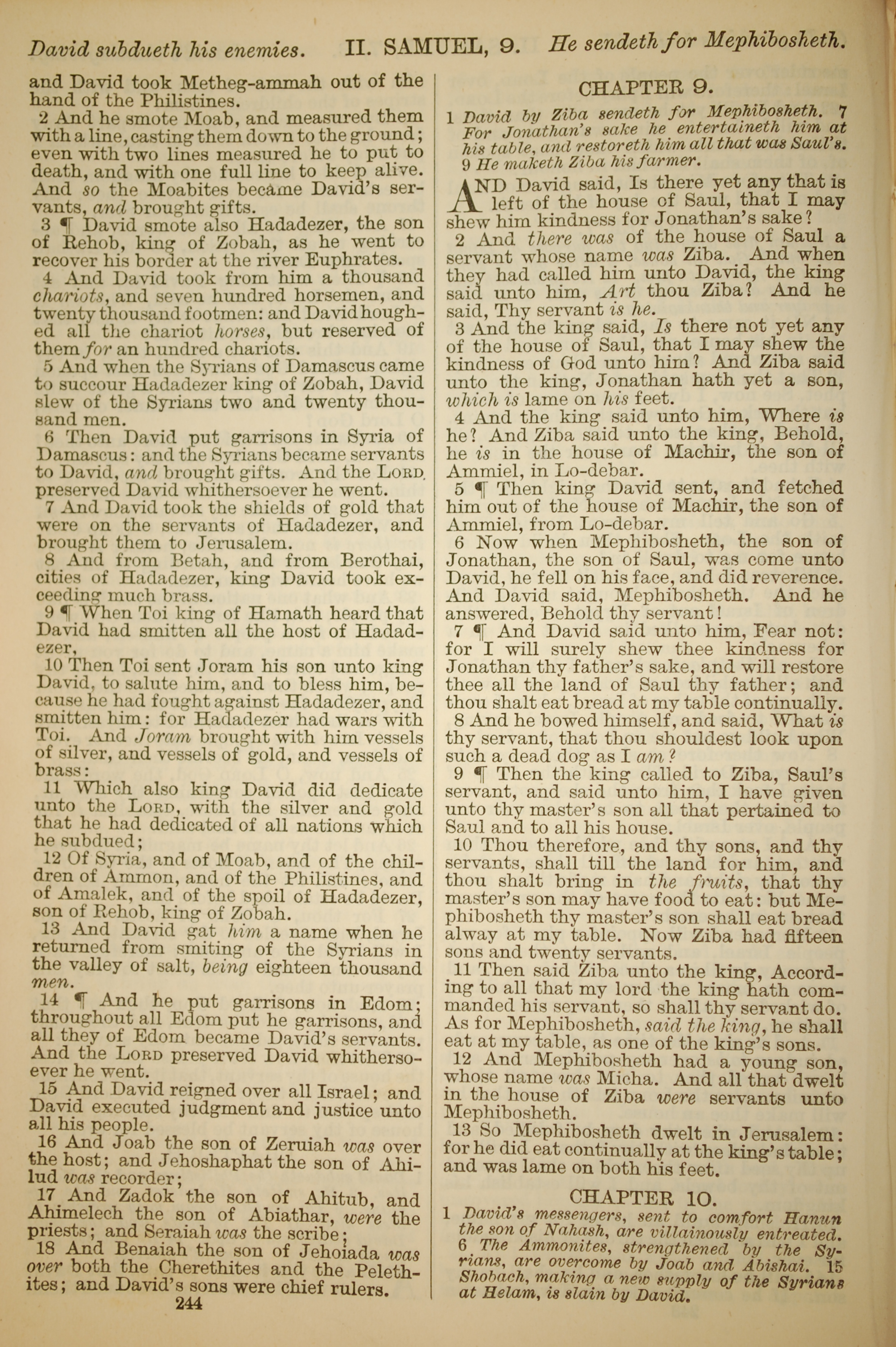 1886年英文聖經 撒母耳記下 8 章 2 節到 9 章 13 節