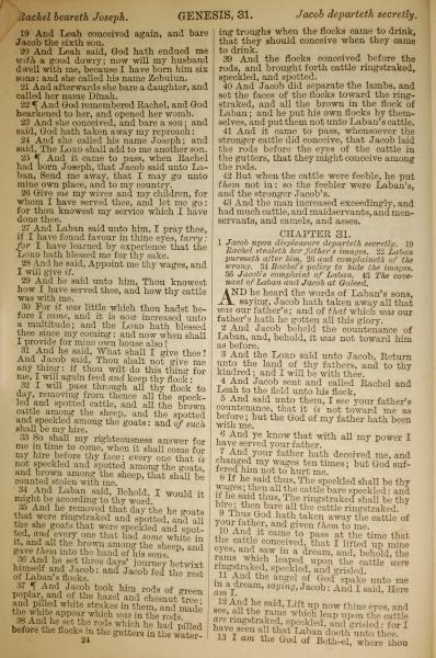 1886年英文聖經 創世記 30 章 19 節到 31 章 13 節