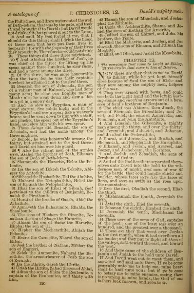 1886年英文聖經 歷代志上 11 章 19 節到 12 章 17 節