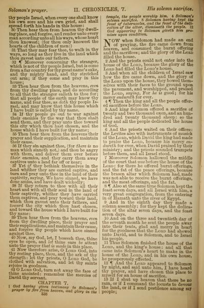 1886年英文聖經 歷代志下 6 章 30 節到 7 章 13 節
