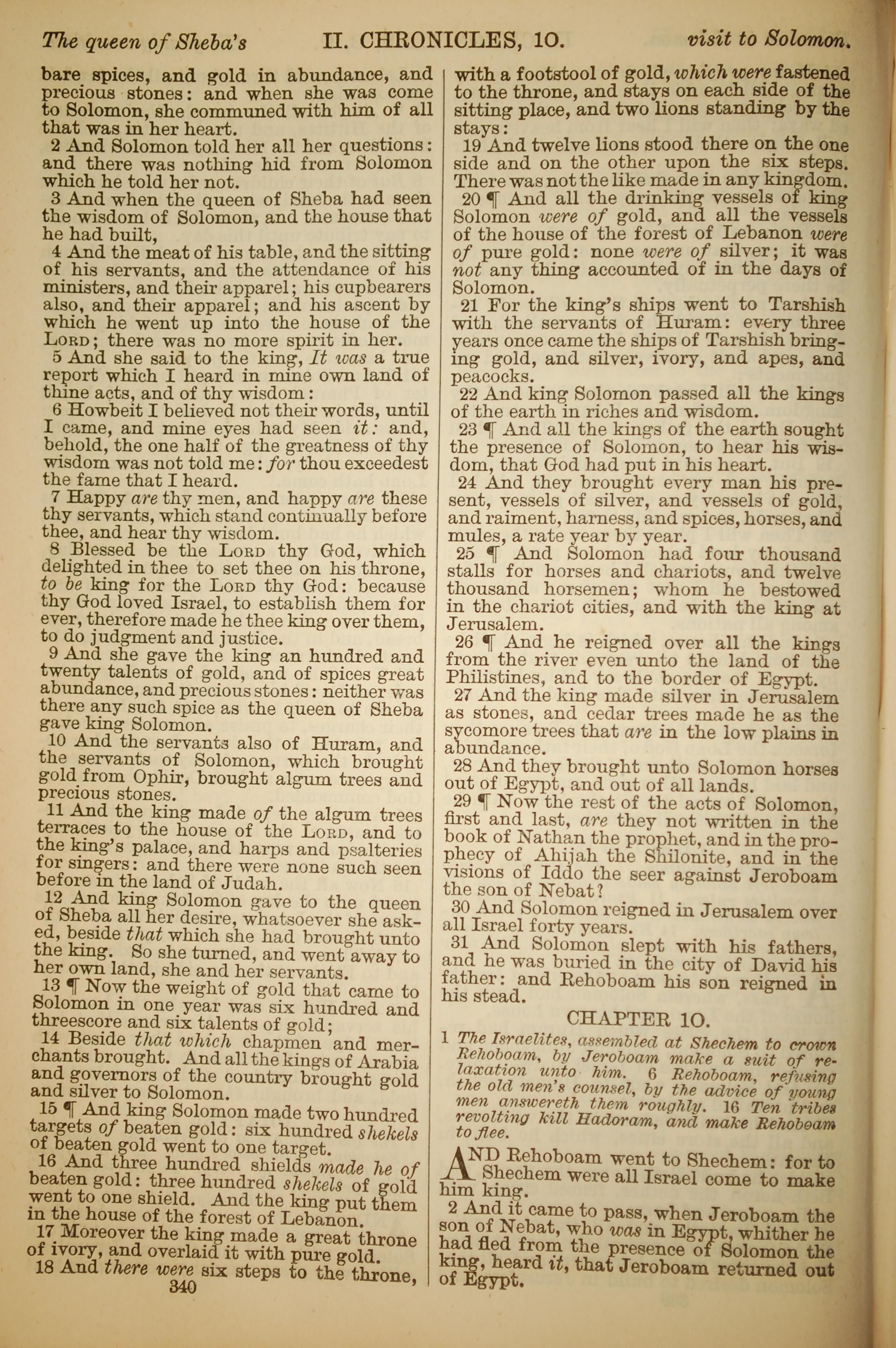 1886年英文聖經 歷代志下 9 章 2 節到 10 章 2 節