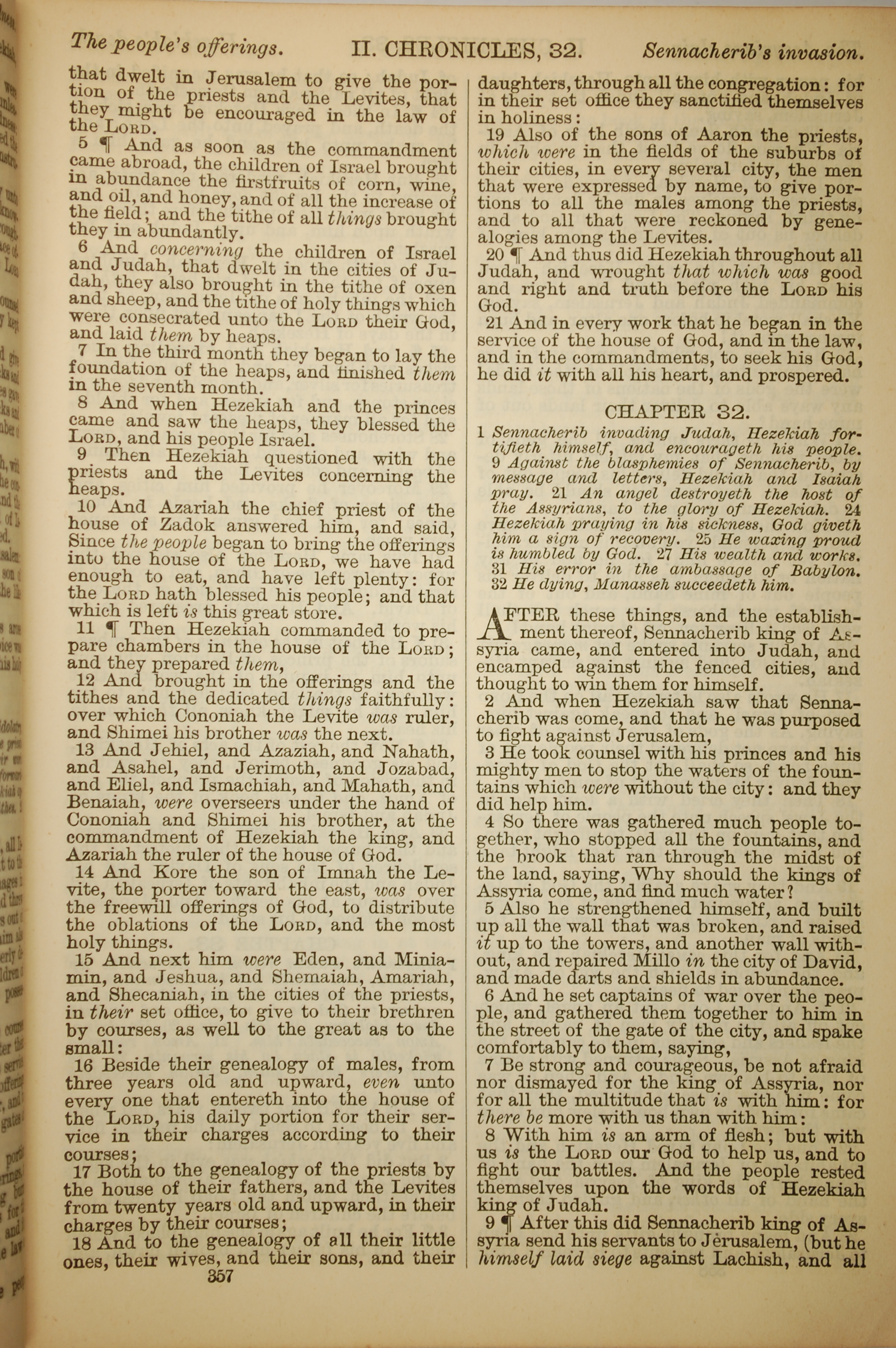 1886年英文聖經 歷代志下 31 章 5 節到 32 章 9 節