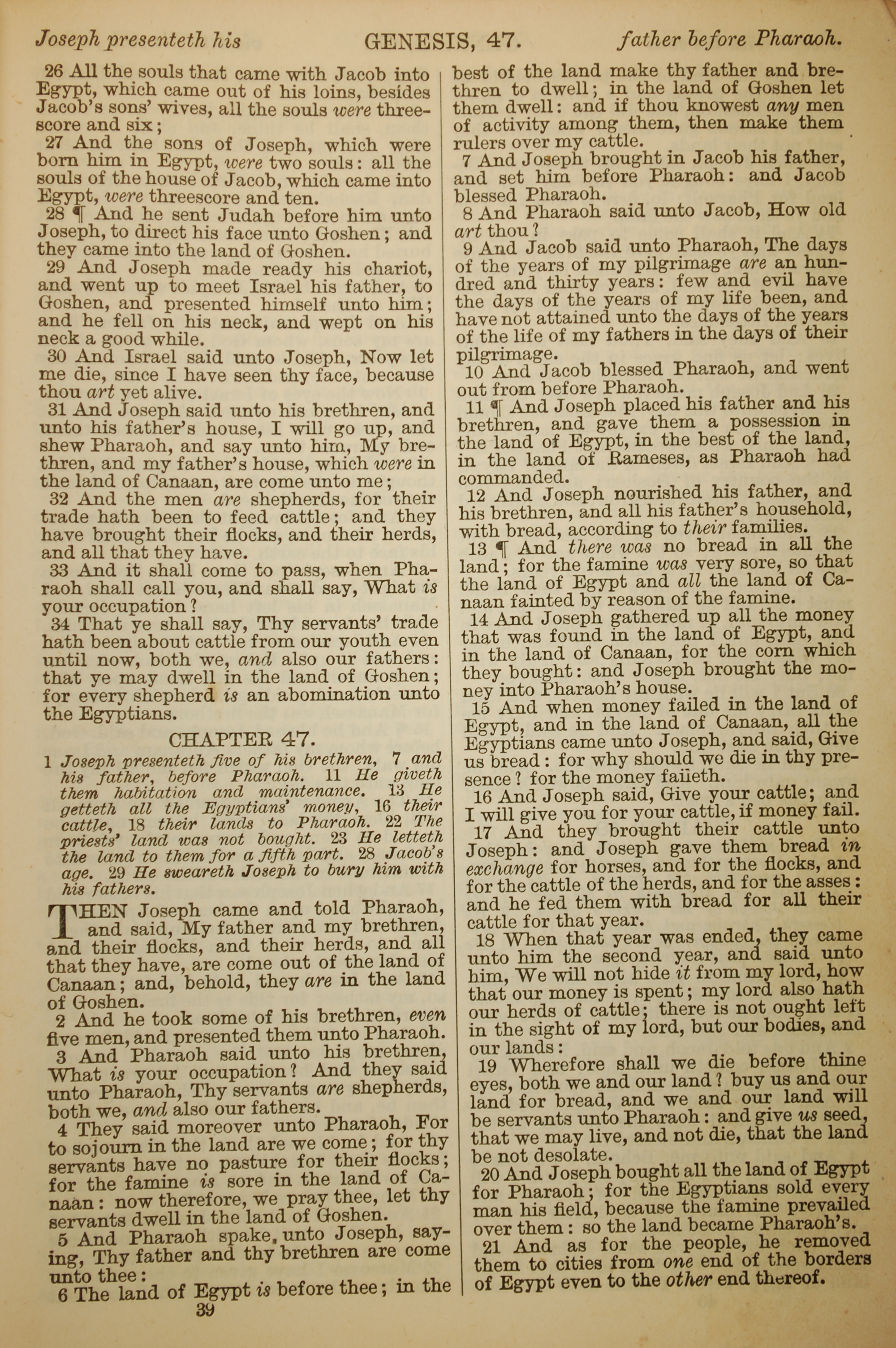 1886年英文聖經 創世記 46 章 26 節到 47 章 21 節