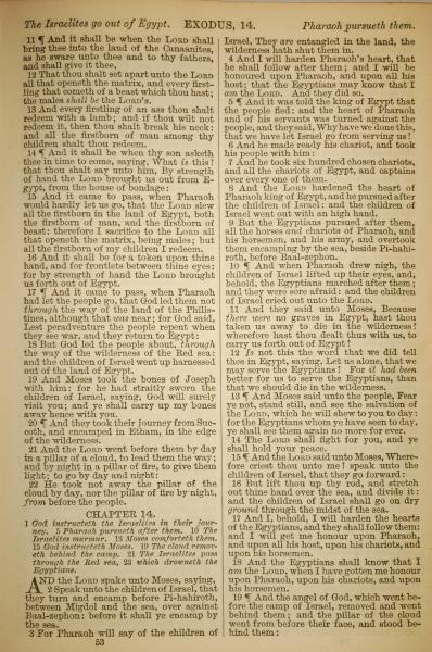 1886年英文聖經 出埃及記 13 章 11 節到 14 章 19 節