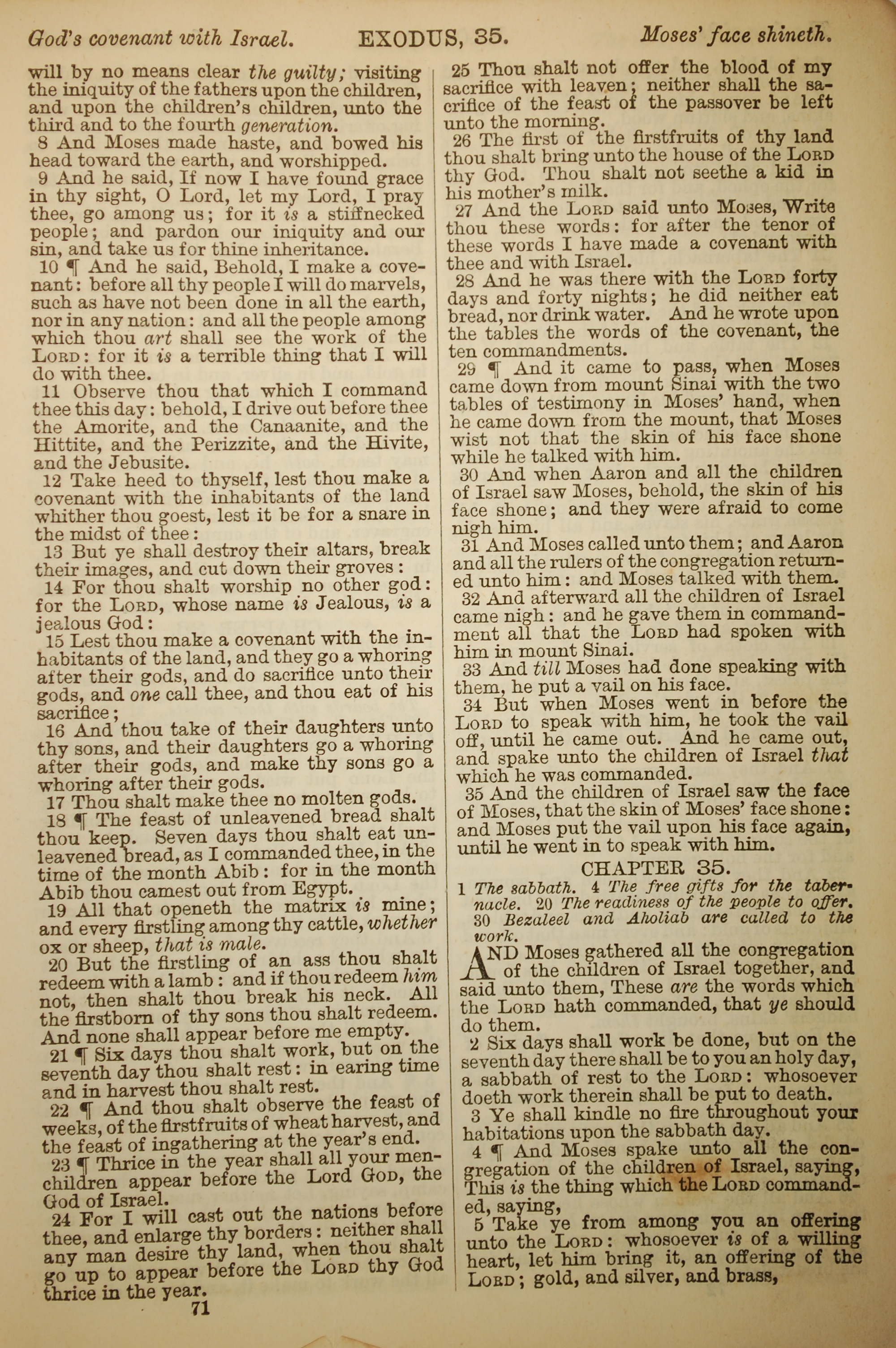 1886年英文聖經 出埃及記 34 章 8 節到 35 章 5 節