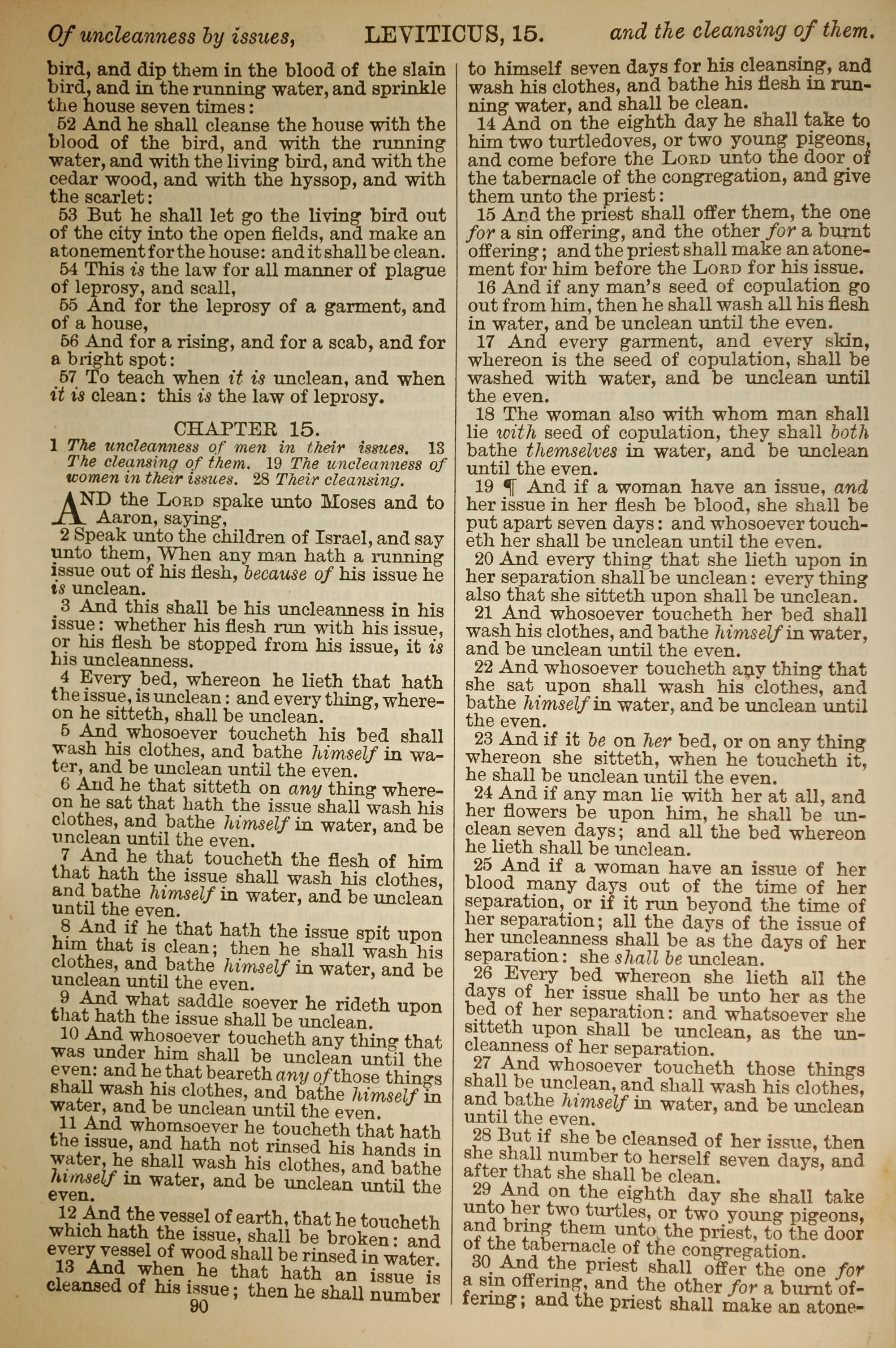1886年英文聖經 利未記 14 章 52 節到 15 章 30 節