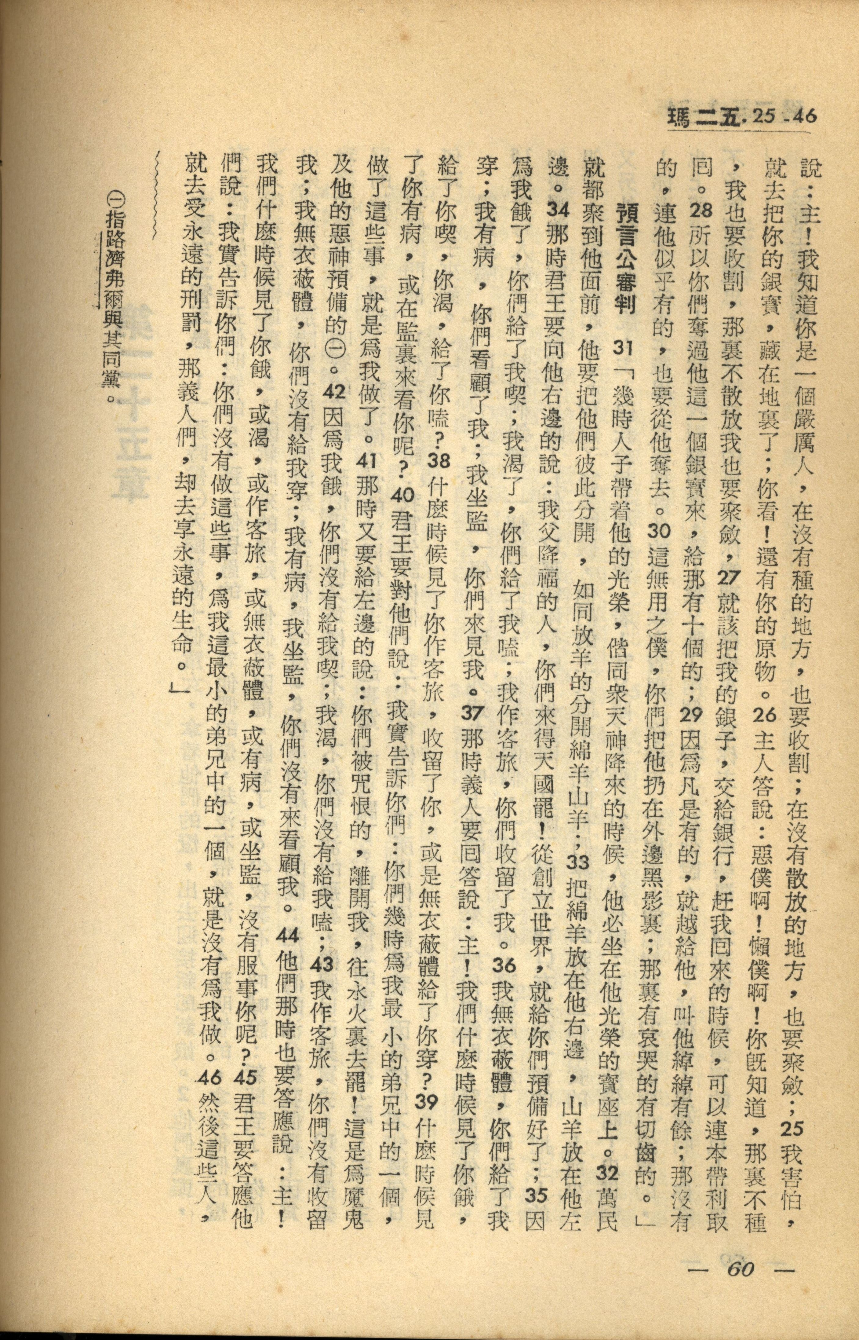 1956年新經全集 馬太福音 25 章 25 節到 25 章 46 節