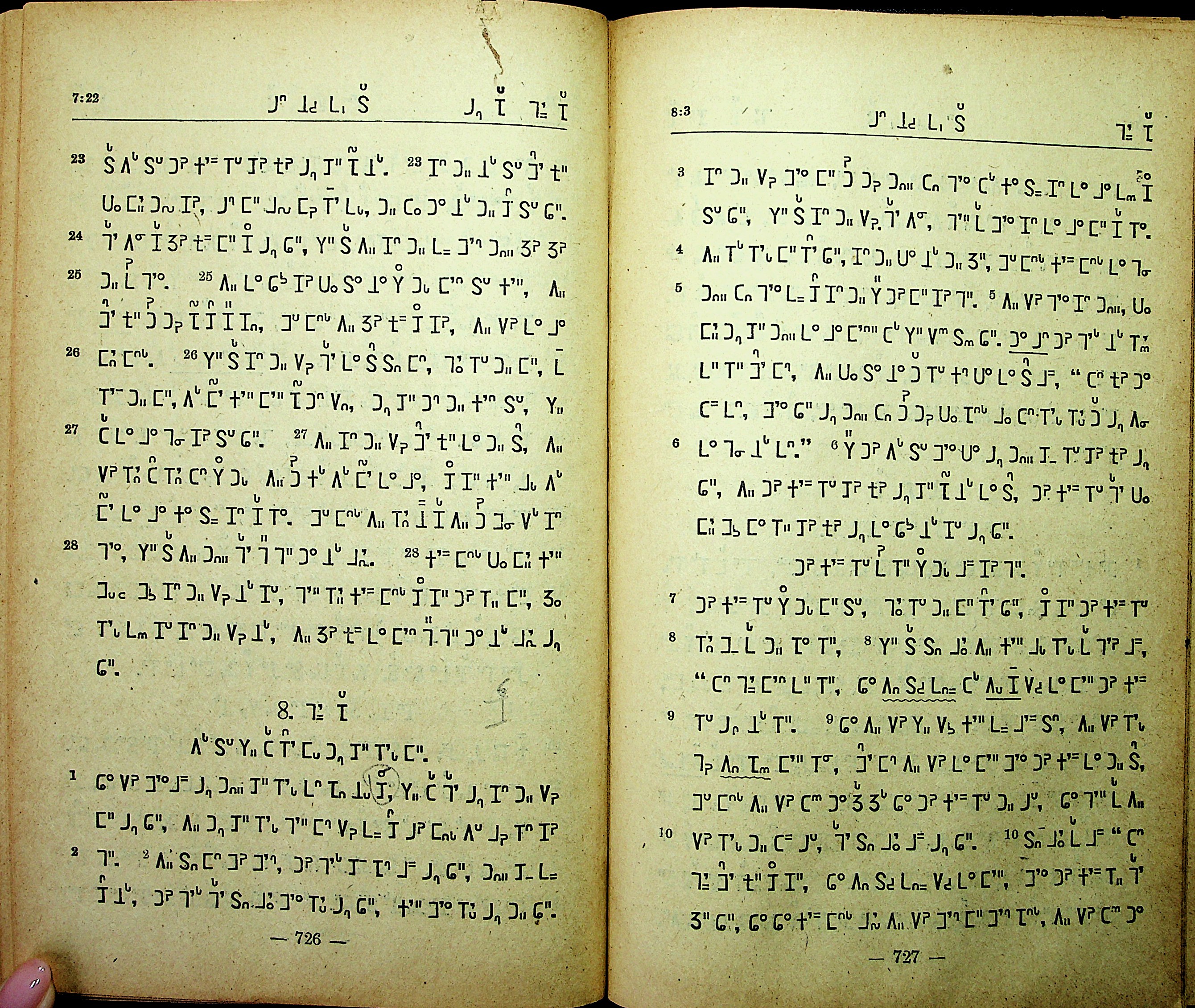 1951年東栗僳新約 希伯來書 7 章 23 節到 8 章 10 節